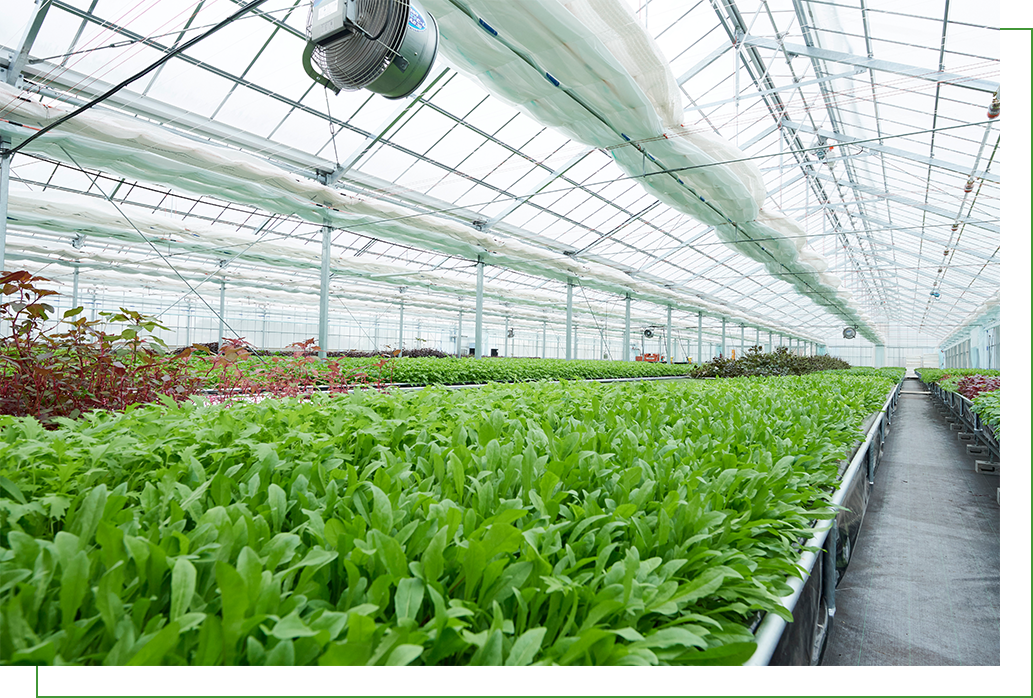 葉物野菜の天敵とも言えるのが、夏の暑さです。弊社では、換気システムや水温管理による生産性の維持により、比較的安定した生産体制を実現。夏場の安定供給を目指して、様々な施策を行っております。
